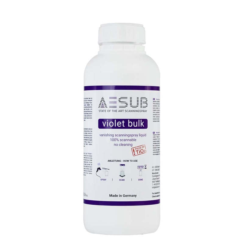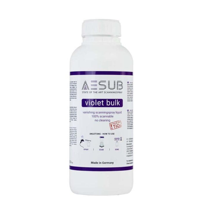 AESUB violet bulk er bulkformatet til AESUB violet 3D-skanningsspray, spesielt utviklet for bruk med sprøytepistoler, noe som gjør den ideell for store volumer.
