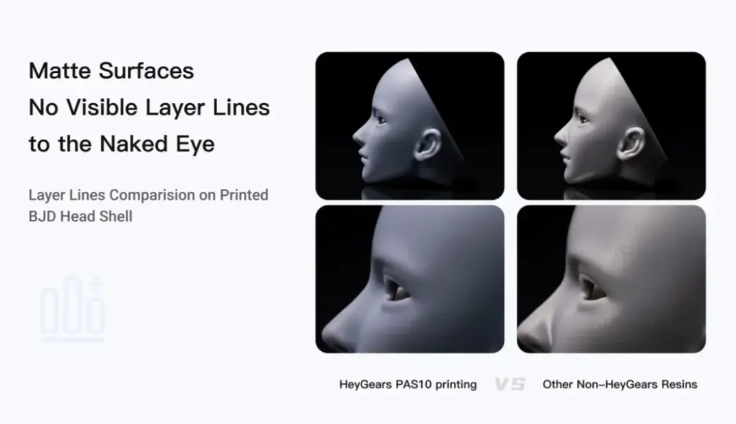 Optimalisert for fart og flyt Den lave viskositeten til PAS10 er en nøkkelfaktor. Tynnflytende resin renner raskere tilbake over byggeplaten mellom hvert lag, og krever mindre kraft for å løsnes fra FEP-filmen. Dette betyr at du kan kjøre printeren med høyere løftehastigheter og kortere ventetider, samtidig som de tynne lagene herdes lynraskt.