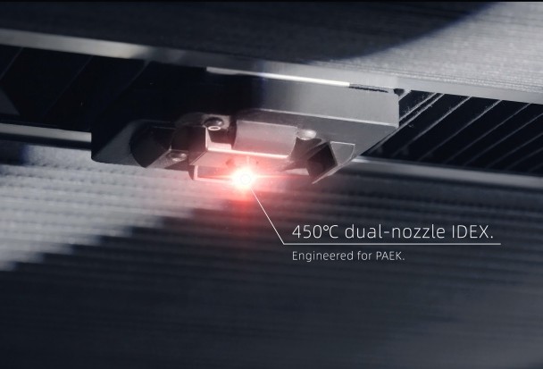 Print at up to 200 mm/s with the first PAEK-optimized dual-nozzle system in the industry, acSkriv ut med opptil 200 mm/s med det første PAEK-optimaliserte systemet med to dyser i bransjen, og oppnår mer enn fire ganger hastigheten sammenlignet med standard PEEK-skrivere.hieving more than 4 times the speed of standard PEEK printers