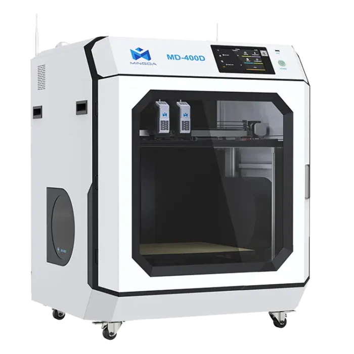 MD-400D tilbyr et betydelig byggevolum på 400 × 400 × 400 mm, egnet for store prototyper og funksjonelle deler. Den stive helmetallrammen sikrer stabilitet, mens det fullstendig lukkede kammeret opprettholder konsistente temperaturer, reduserer vridning og forbedrer utskriftskvaliteten.