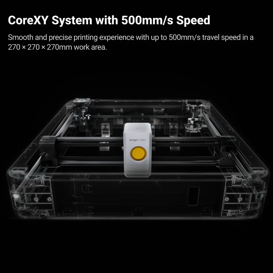 CoreXY-systemet lar hvert hode skrive ut med opptil 300 mm/s med en akselerasjon på 20 000 mm/s². Kombinert med SnapSwap™ kan flerfargeutskrifter produseres raskt og konsistent.
